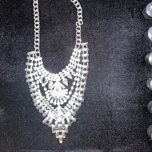 Vintage Rhinestone Statement Necklace – Silver-Tone Layered Costume Jewelry