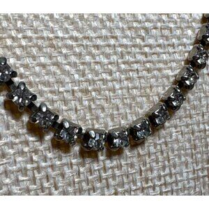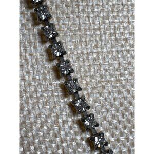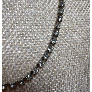 Vintage Rhinestone Tennis Necklace Silver Tone Elegant Jewelry Chocker 14"