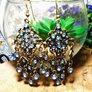 Vintage Rhinestone earrings Chandelier ornate details NWOT Rhombus Dangles