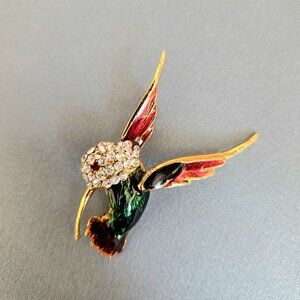 Vintage Rhinestones and enamel Hummingbird Brooch Pin. Bird lover gift.