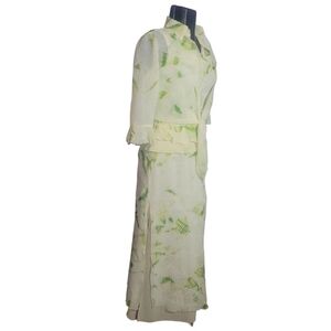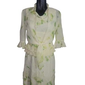Vintage 1990's Ribkoff Trends pale yellow and green leaf patterned 3pc skirt set