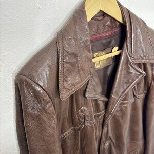 Vintage Rice Men 42 Brown Cabretta Leather 70s Jacket Coat Lined Sheepskin