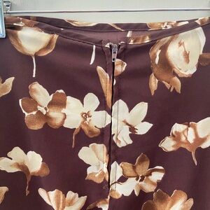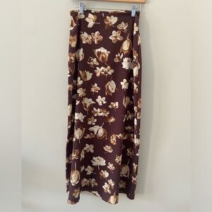 Vintage Rich Brown Floral Cream Fall Maxi Column Skirt