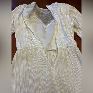 Vintage Ricki Lang for Nuit Silk Crinkle Pleated Midi Dress White Sz 6 Bling