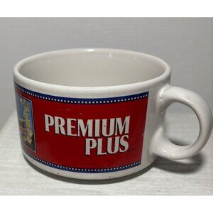 Vintage Ritz & Premium Plus Ceramic Mug Red White Retro Advertising 8 Oz
