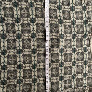 This vintage Robert Stock 100% wool sweater is a true statement piece with its bold geometric checkered pattern in grey, black, and subtle green accents. Featuring a cozy shawl collar neckline with a button closure, ribbed cuffs and hem, and a relaxed fit, this sweater delivers both warmth and timeless style.