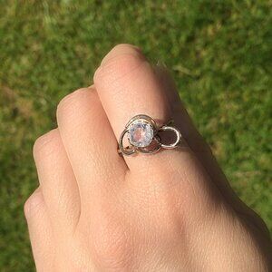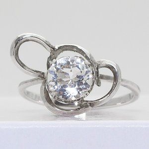 Vintage Rock Crystal Ring, Real Sterling Silver Fancy Cocktail Ring, Size 7.25