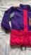 Rockport Jacket with Removable vest, in very good condition - some signs of wash wear, particularly on upper shoulders. Colour block style, suede shoulders and detail on cuffs. Hidden zippered hood, drawstring waistband and bottom. Two large front pouch pockets, and a zippered breast pocket. Interior quilted vest, connected by zipper and waist drawstring.