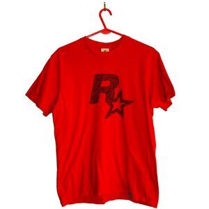 Vintage Rockstar Games Men's Medium Red 1998 Graphic Short Sleeve Tee Shirt