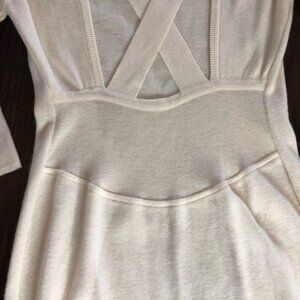 Vintage Rodier Off White Cream Wool Sweater Dress Criss Cross Back