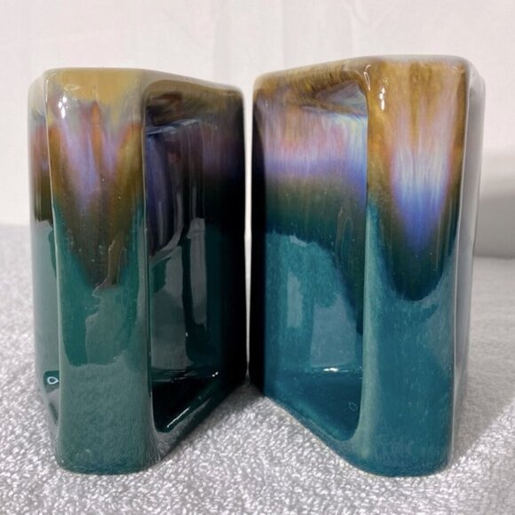 Vintage Rodolfo Padilla Artist Signed Green Purple Drip Glazed Mugs x2