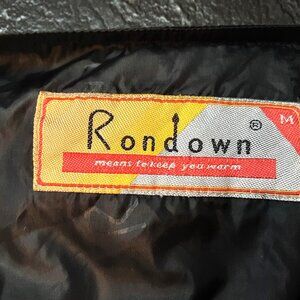 Rare vintage down jacket by Rondown (Rondo Down Factory), made in China, early 2000s. A clean example of weird Chinese vintage with unusual branding, including the factory slogan “means to keep you warm” and shell and lining fabrics subtly patterned with the “Rondown” logo.