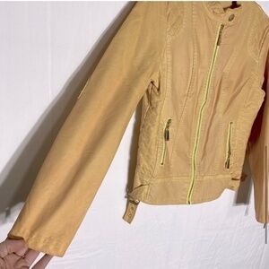 Vintage Roosevelt American College Dyed Yellow Distressed Faux Leather Jacket M