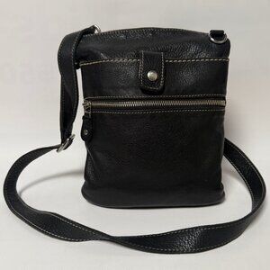 Authentic Vintage Roots Venetian Tribe Black Soft Leather Crossbody Purse, Made in Canada. Gently used and in excellent condition. Features a sleek, timeless design with adjustable strap, perfect for everyday wear, travel, or adding a classic Canadian-made statement to your wardrobe. High-quality leather ensures durability and style.