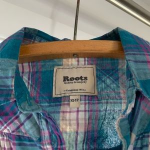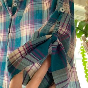Turquoise and pink checkered peasant blouse. Very light and airy. Good used condition. Non-smoking home.