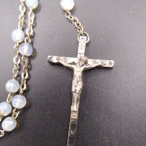 Vintage Rosary with Opaline Beads Silver Tone Metal Crucifix stamped Italy