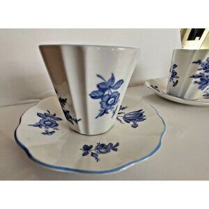 Vintage Early Rosina England Tea Cup & Saucer Sets (2) Blue Roses