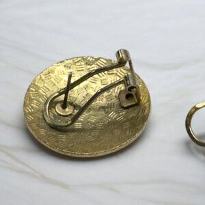 Vintage Round Enamel on Metal Pierced Earrings Geometric Shapes Gold Tone