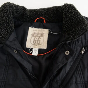 Vintage Route 66 Black Zip Up Bomber Winter Coat Size Large