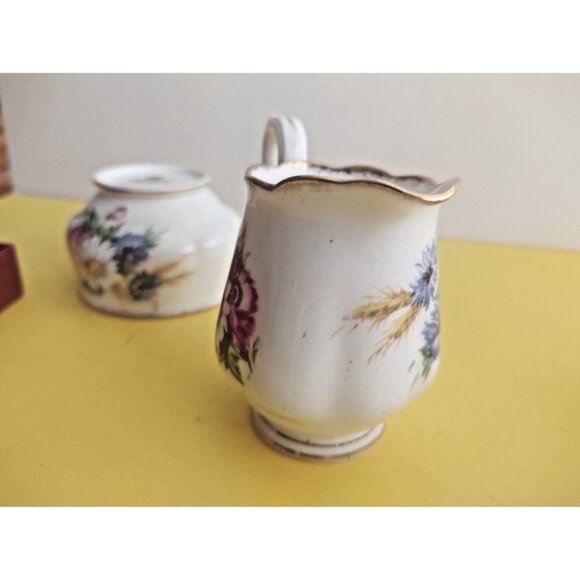 Vintage Royal Albert Creamer & Sugar Bowl Set Harvest Bouquet 1945