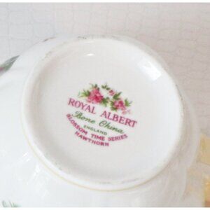 For your consideration is a lovely bone china teacup by Royal Albert England from the Blossom series featuring the Hawthorn , circa 1960s.