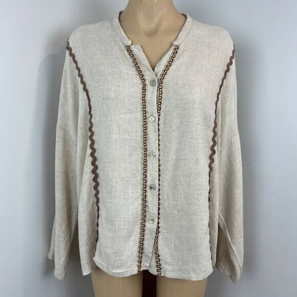 Vintage Royal Belle Womens One Size Beige Western Cottage Button Down Shirt Top