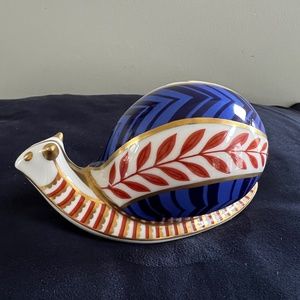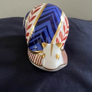 Pre-loved, stunning piece in excellent condition. Made of English bone china. Colours are brilliant and true to form for Royal Crown Derby!! Measures approx 5 inches long by 2.75 inches tall. From a smoke free home. No chips/cracks/crazing.