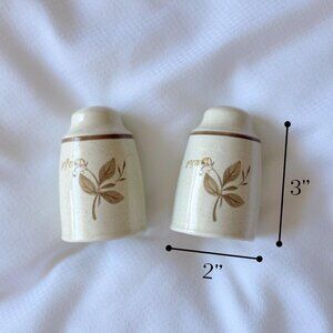 Add a touch of vintage charm to your kitchen with this beautiful pair of Royal Doulton Lambethware salt and pepper shakers from 1977. Featuring an elegant brown floral design on speckled stoneware, these classic shakers bring a rustic yet timeless aesthetic to any table setting.