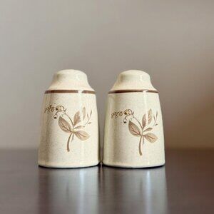 vintage salt and pepper shakers, Royal Doulton Lambethware, 1977 kitchenware, brown floral stoneware, farmhouse kitchen decor, rustic dining accessories, collectible kitchenware, vintage table setting, English pottery, mid-century kitchen decor, speckled stoneware shakers, retro salt and pepper set, country cottage decor, ceramic spice shakers, traditional British pottery, antique-inspired kitchen, neutral kitchen accessories, collectible home decor, timeless ceramic kitchenware, rustic farmhouse dining.