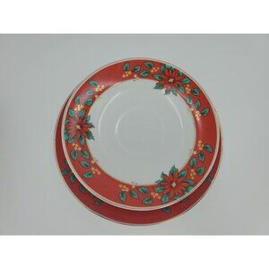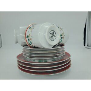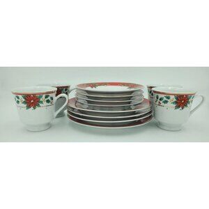 Vintage Royal Heritage Porcelain Poinsettia Christmas Tea Set - 12 pieces