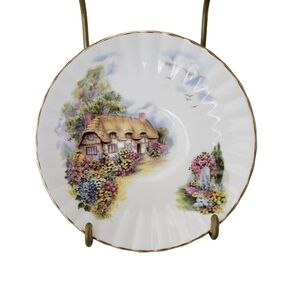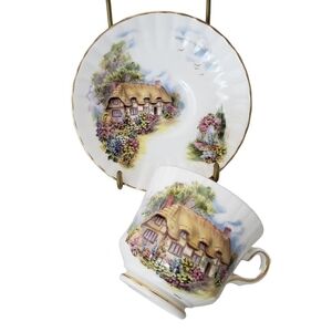 Vintage Royal Stafford Ribbes Bone China Cottage Scene Teacup & Saucer