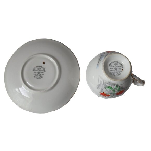 For your consideration is a beautiful vintage teacup and saucer by Royal Stafford from the Wild Flower Series, hand painted columbines and lupines.