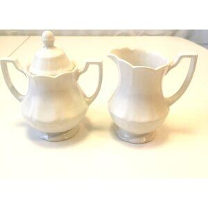 Originating from England, this sugar bowl and creamer is a testament to the enduring quality of Ironstone ceramics. Its heritage and fine craftsmanship are sure to be admired by collectors and enthusiasts of traditional tableware.