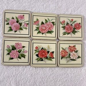 Vintage Royal Table Satin Finish Pink Flower Coasters x6