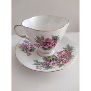 Vintage Royal Windsor Tea Cup & Saucer Set Pink Pansies Square shaped Cup