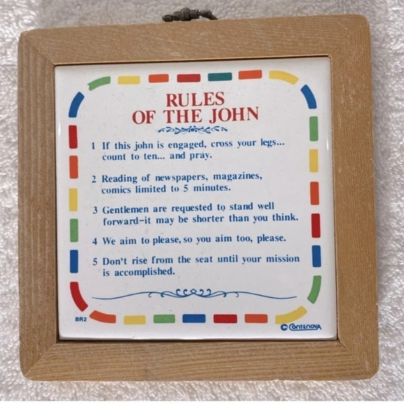 Vintage Rules Of The John Framed Decorative Ceramic Tile