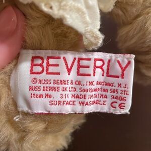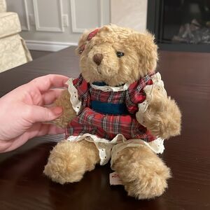 Vintage Russ Berrie, Beverly the Tan Bear From The Past Plush 10” Plaid Dress