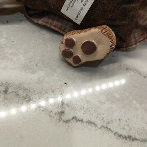 In excellent pre-loved condition- This adorable Russ Cat The Country Folks Collection is made of resin and wearing a cloth outfit. From the sweater to the basket of flowers she is holding they are attached to soft filled bodies with beans . It has spent the majority of its life in a storage bin.The Artist is K Kelly. Original tag attached. - Made in China