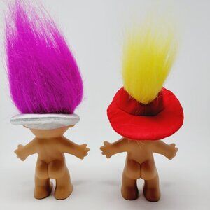 Vintage Russ Troll Dolls Pink and Yellow Haired lot of 2 4.5"