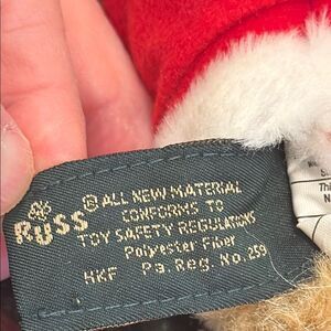 Vintage Russ Santa Bear With Santa Hat 9" Adorable teddy bear dressed as Santa Claus. Features a red and white outfit with a black belt.