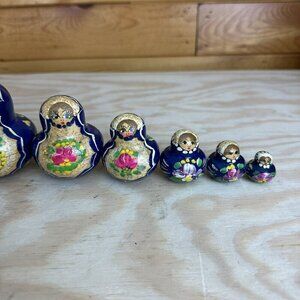 Vintage Russian Nesting Doll 8 Piece Set Girl With Flowers Rare Set