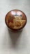 Vintage Russian Wooden Painted Round Trinket Box, Browns Greens White Yellow Kremlin