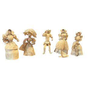 Vintage Rustic Corn Husk Dolls Set of 5 Handmade Folk Art Thanksgiving Decor
