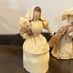 corn husk dolls, handmade folk art, primitive decor, rustic farmhouse fall, Thanksgiving display, vintage harvest dolls, cottagecore autumn, handmade vintage set, folk art collection