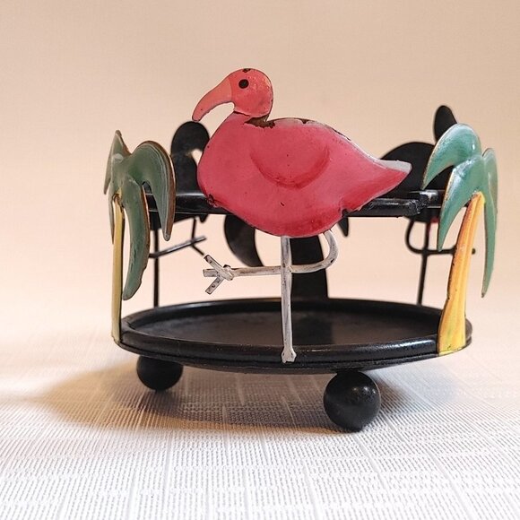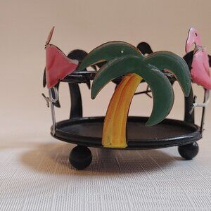 Vintage Rustic Metal Flamingo Tropical Candle Holder