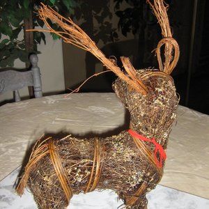 Reindeer decoration for Christmas decor. One of a kind vintage crafted workmanship. The reindeer stands 20" tall and is 12" in length. There is a red tie with a bell around the neck.