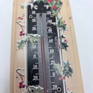 With the charm of yesteryear this vintage Rustic Tin Hardware Store Blue Bird Christmas Greetings Thermometer measures 8 inches, with a delightful nod to traditional advertising signs. Its beige hue pairs with green red holly and a blue bird offers a variety of decor styles, adding a touch of nostalgic warmth to your space.