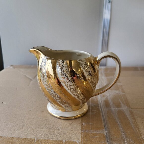 Vintage SADLER 1539 Lustreware Ivory & Gold Striped Creamer GUC (BIN H)