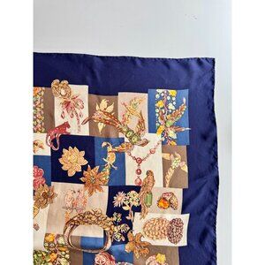 Vintage SALVATORE FERRAGAMO Navy Patchwork Silk Twill 34" x 33" Square Scarf