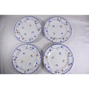 Vintage SET of 4 Royal Crown Derby classic dinner plates, 1921 - 1940 white blue